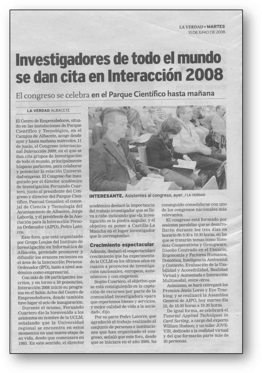 En el año 2008 se celebró en la Universidad de Castilla-La Mancha el congreso Interacción 2008 en una edición especialmente recordada por su carácter acogedor.